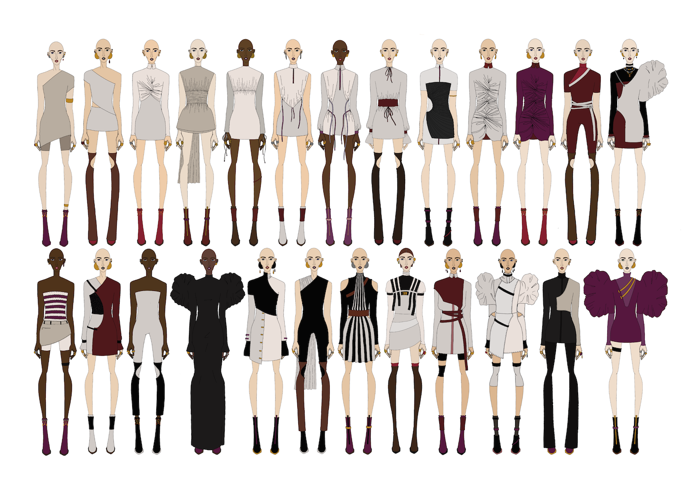 Cette collection porte sur les lignes, les courbes, la simplicité des lignes, l’efficacité des proportions et des coupes.